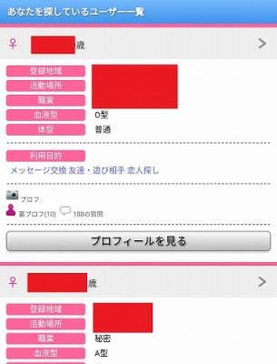 ②女性のプロフィール=自分の望む相手になった場合のみ、自分の検索結果一覧にその女性のプロフィールが表示されます。