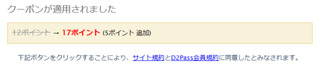 5.以下のように表示されたら、クーポンが適用されたことになります。