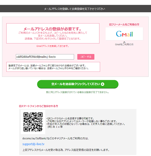 下記ボタンから登録画面に行き、ニックネーム、パスワード、電話番号、メールアドレスを登録すれば、完了です。